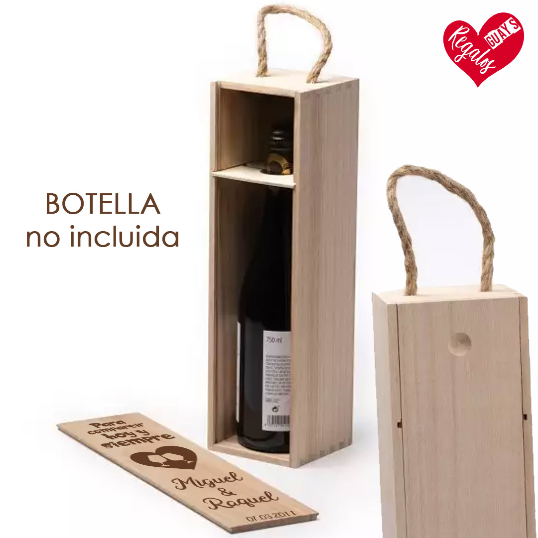 No incluye botella de vino, para que puedas elegir la que mejor encaje con la persona homenajeada.