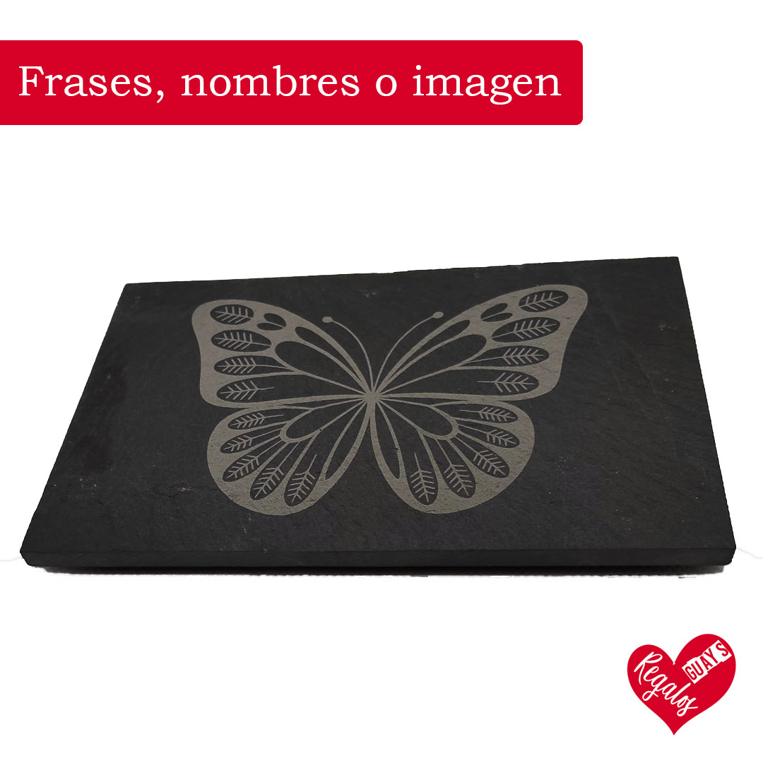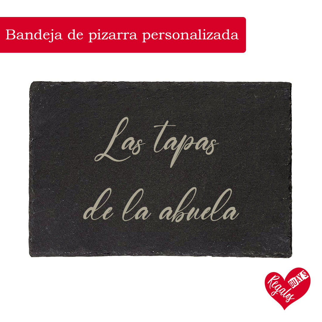 Esta bandeja de pizarra personalizada grabada a láser es una pieza sencilla, elegante y muy versátil. Fabricada en pizarra natural, cada bandeja es única por su textura y acabado, lo que la convierte en un regalo especial y con carácter.